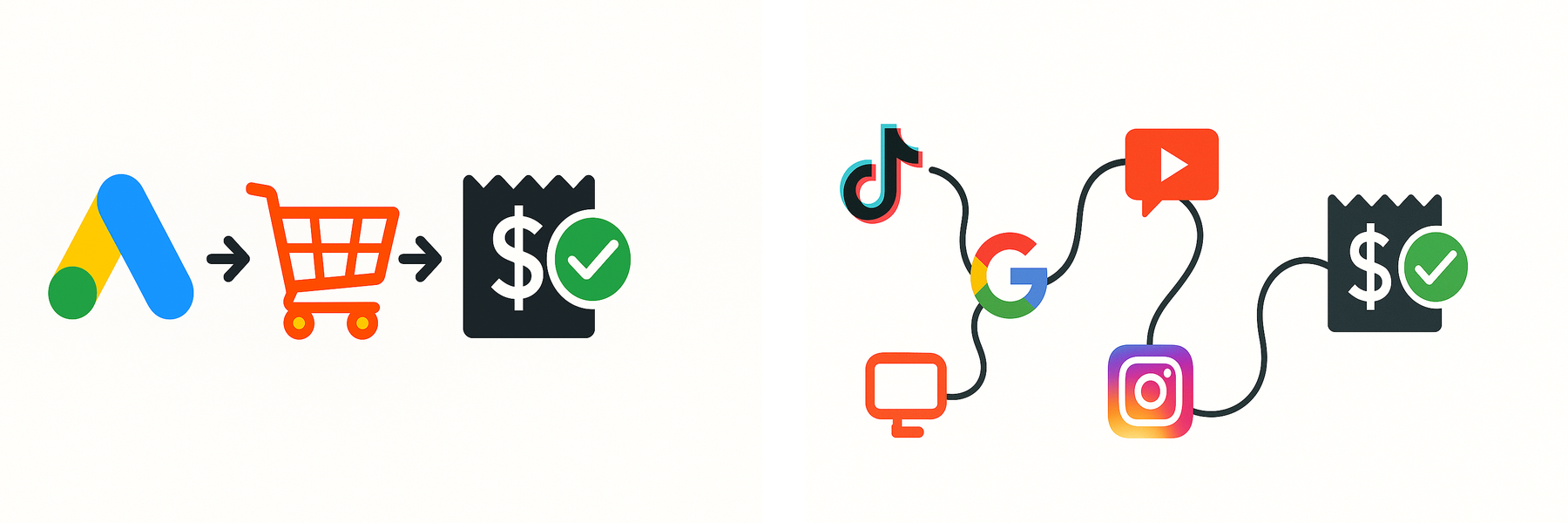 Today the customer journey often looks more like this: TikTok → Google → YouTube review → online store → Instagram → Google remarketing → purchase.